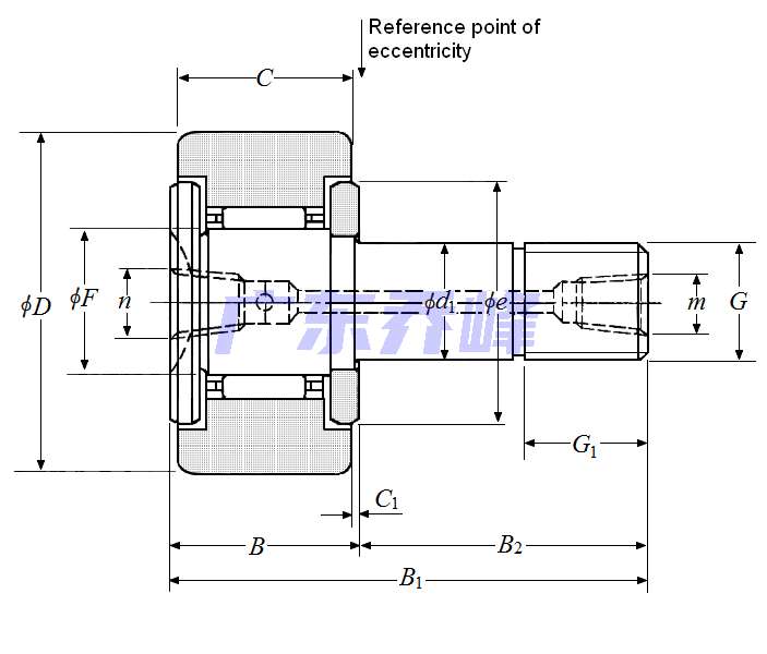 | 凸輪從動螺柱式滾輪軸承 - 圓柱內徑,KRU型 - 尺寸 | |