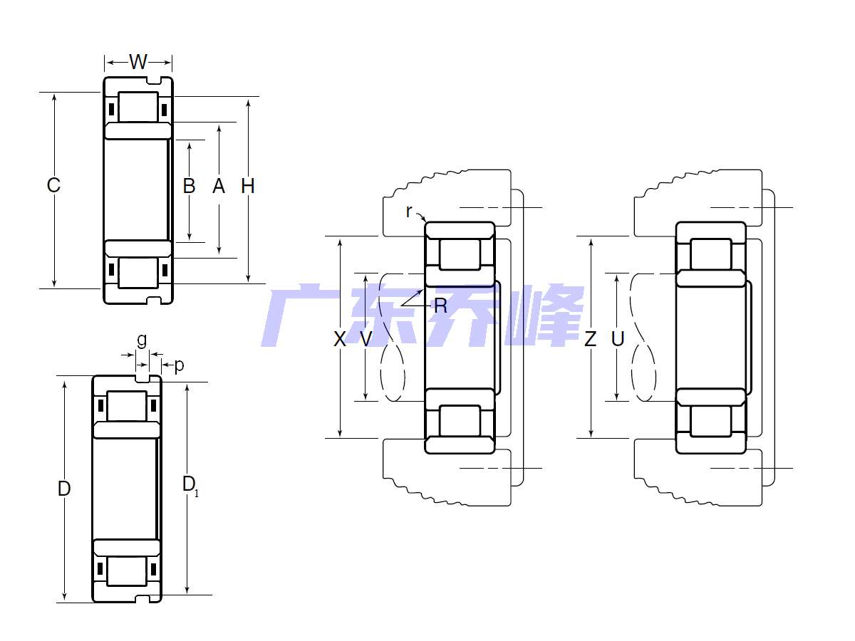 圓柱滾子軸承 -可分離型,普通內圈,外圈帶兩個加強筋,帶止動環槽 - 尺寸