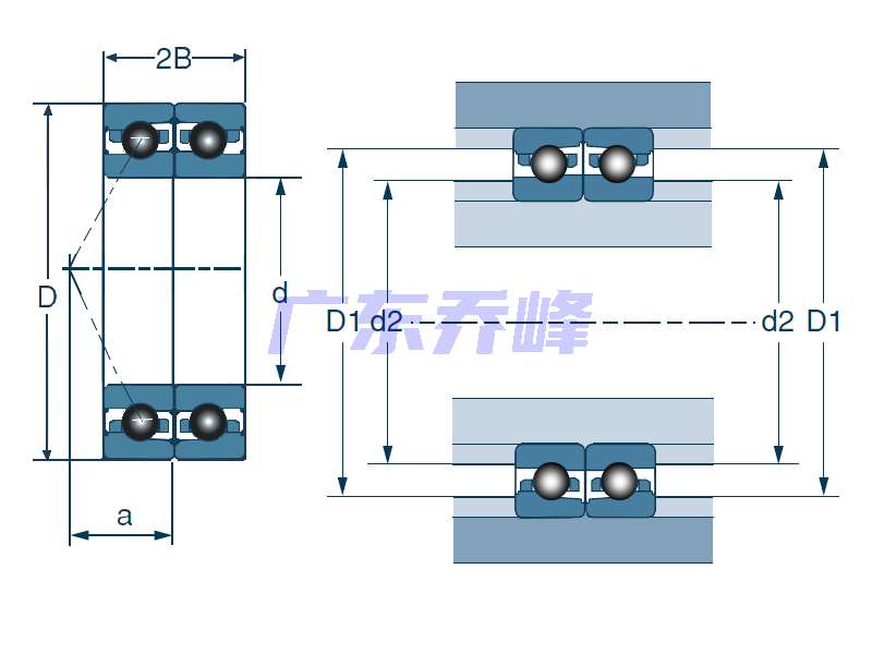 | 密封雙列混合陶瓷角接觸球軸承,高精度 - 尺寸 | |