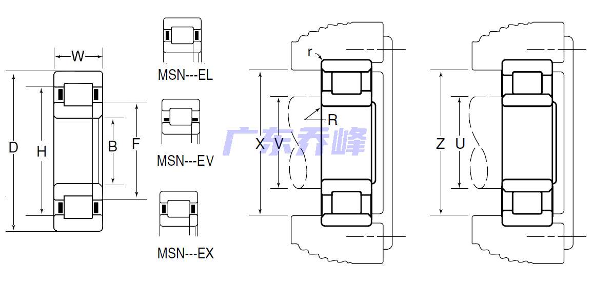 MSN:M:NTN BOWER產品,標準公制尺寸系列,S:帶一個短擋邊的內圈,N:內圈擋邊