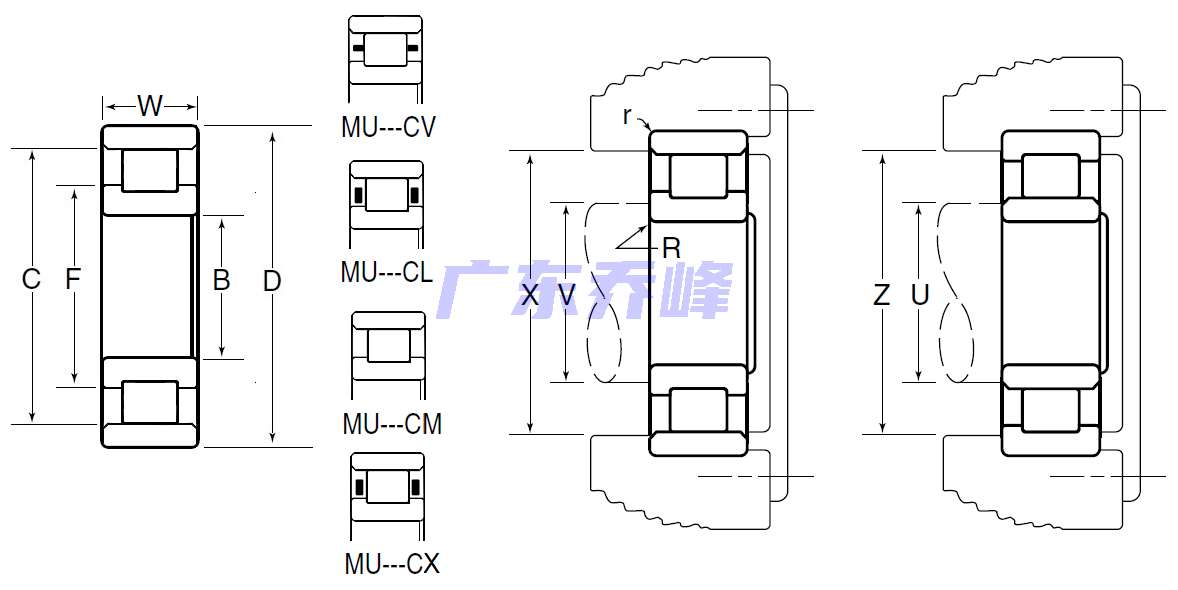 MU:M:NTN BOWER產品,標準公制尺寸系列,U:內圈雙擋邊