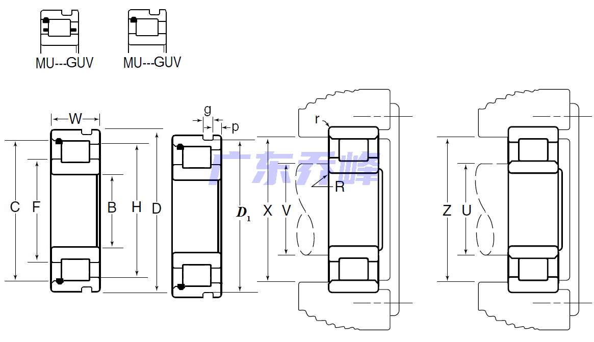 MU:M:NTN BOWER產品,標準公制尺寸系列,U:內圈雙擋邊