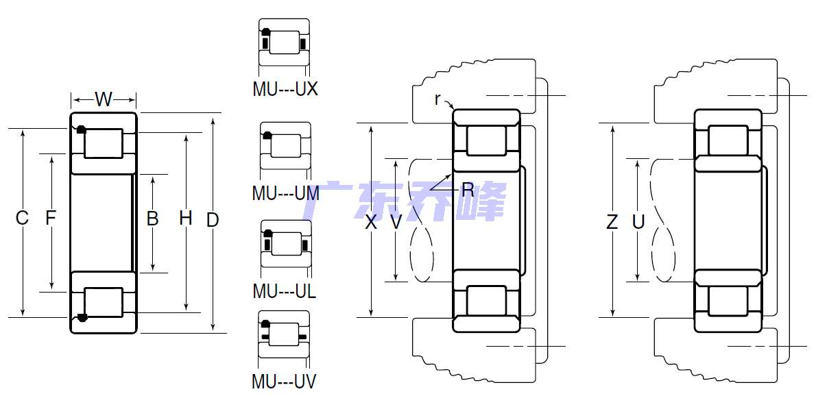M:NTN BOWER產(chǎn)品,標(biāo)準(zhǔn)公制尺寸系列,U:內(nèi)圈雙擋邊