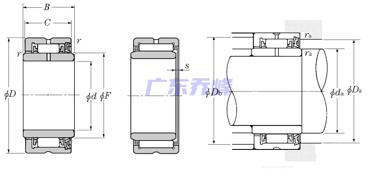 | 機加工滾針軸承帶內圈 - NA49系列,單面密封 - 尺寸 | |