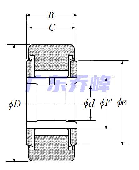 | 擋圈型滾輪軸承 - 帶內圈,雙面密封,NATV型,圓柱內徑 - 尺寸 | |