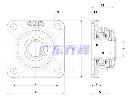 | 類型 | 四螺栓方形法蘭式軸承座 |
