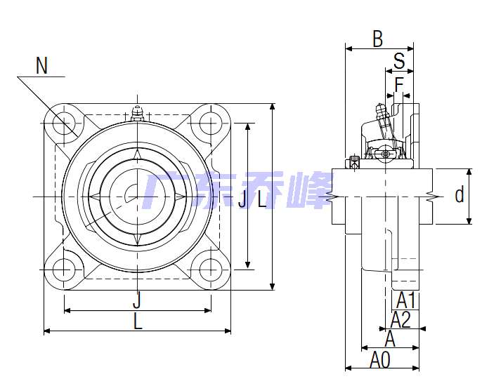 | 類型 | 四螺栓方形法蘭式軸承座 |
