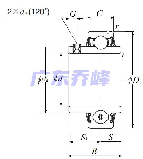 | 帶緊定螺釘的外球面軸承,寬外圈 - 圓柱內徑 - 尺寸 | |