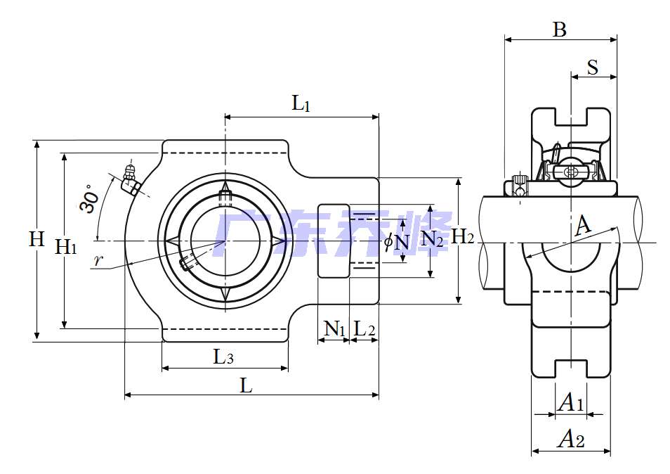 | UCT216HT2D1 | 詳細(xì)尺寸,d:80.000mm,h:184.00000mm,2b:111.000mm,r:235.000mm,r2max:165.000mm |