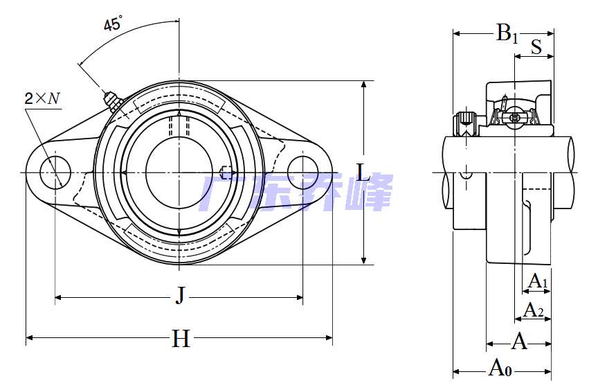 | 類型 | 雙螺栓菱形法蘭式軸承座單元 |