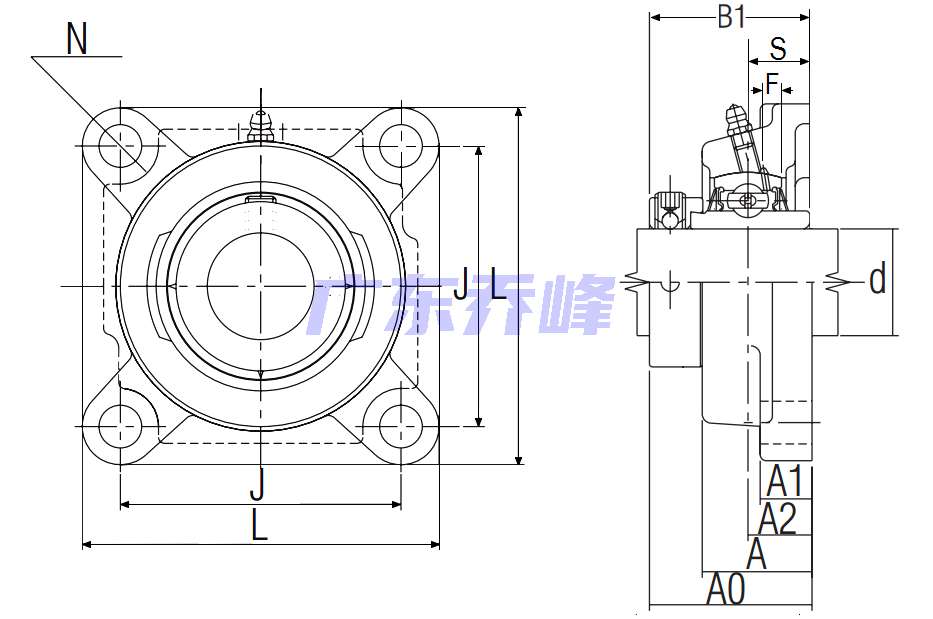 | 類型 | 四螺栓方形法蘭式軸承座 |