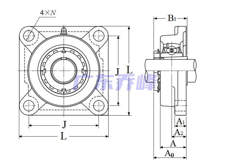 | 類型 | 四螺栓方形法蘭式軸承座 |